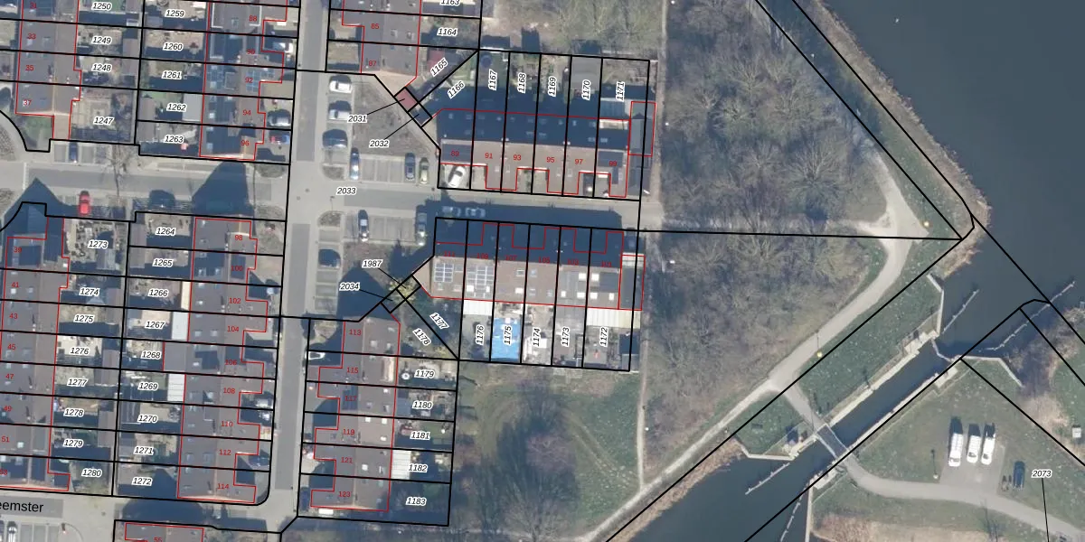 Gebruik de zoekbalk of klik op een perceel voor informatie over de adressen binnen dit perceel.
