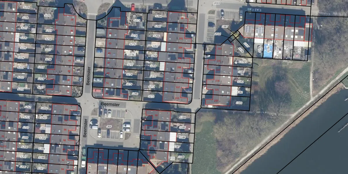 Gebruik de zoekbalk of klik op een perceel voor informatie over de adressen binnen dit perceel.