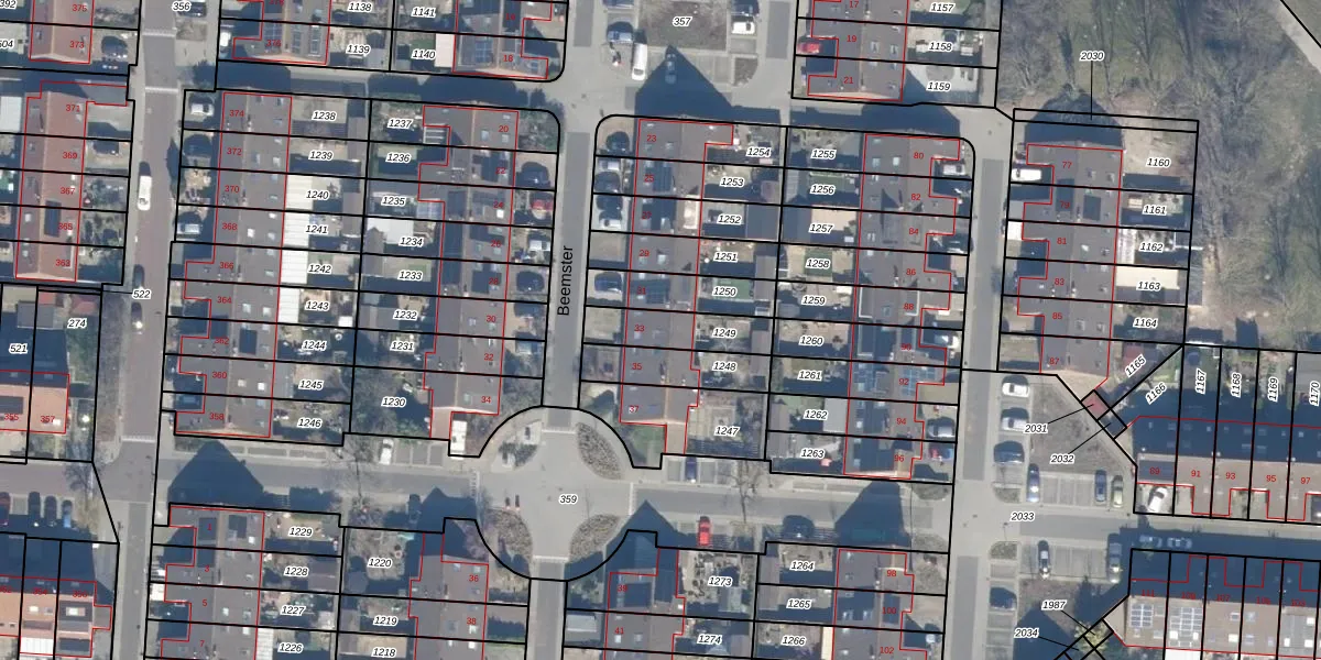 Gebruik de zoekbalk of klik op een perceel voor informatie over de adressen binnen dit perceel.