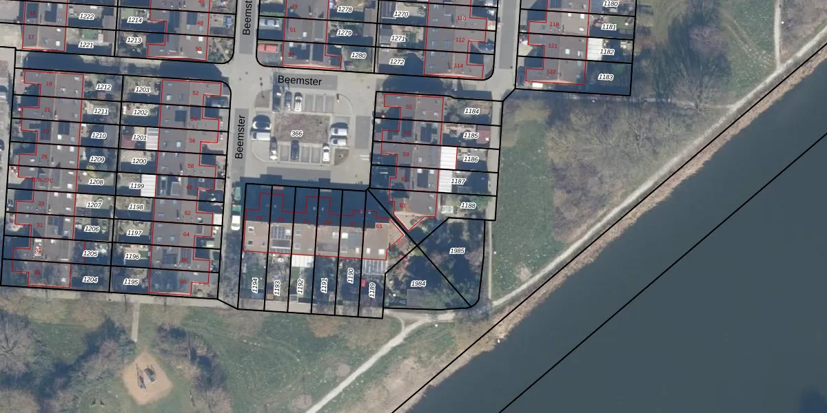 Gebruik de zoekbalk of klik op een perceel voor informatie over de adressen binnen dit perceel.