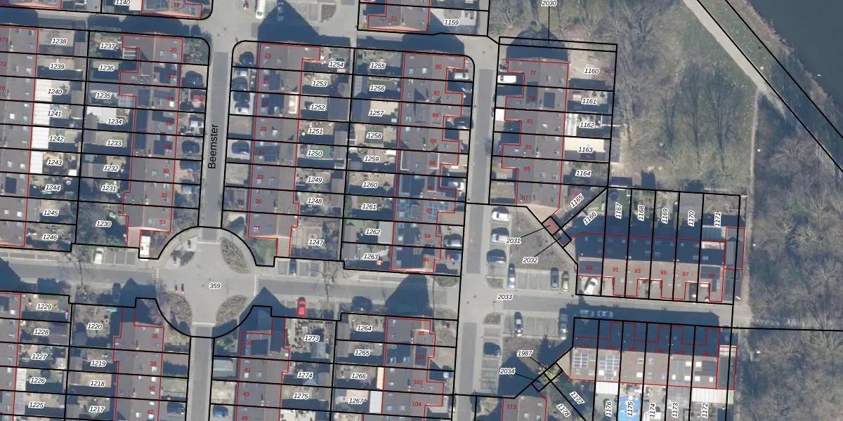 Gebruik de zoekbalk of klik op een perceel voor informatie over de adressen binnen dit perceel.