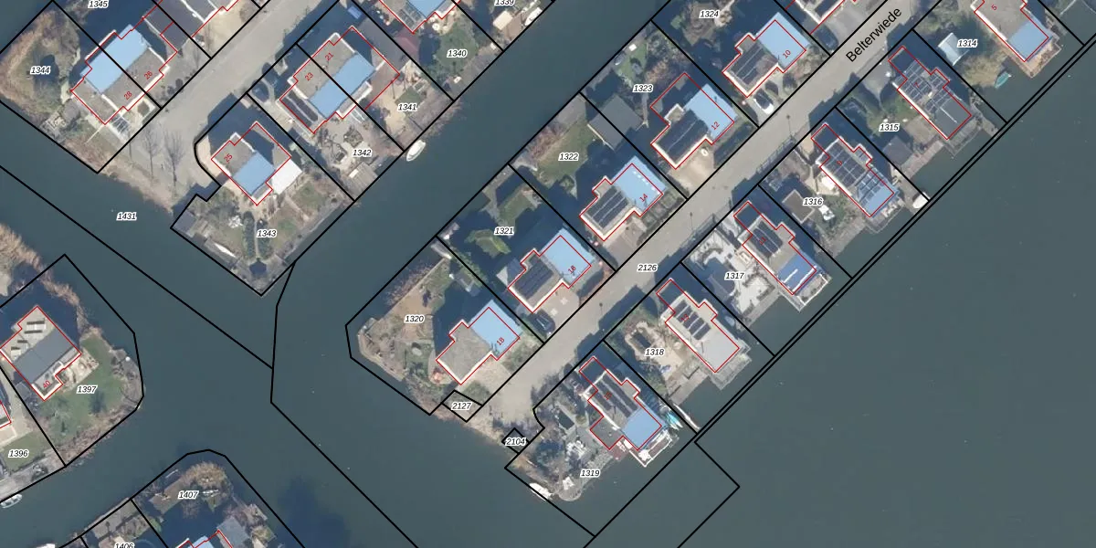 Belterwiede 16 is gelegen op kadastraal perceel LLS00S1321. Deze kadastrale aanduiding is uniek en wordt gebruikt door het Kadaster om eigendomsrechten en andere zakelijke rechten vast te leggen. Het perceel maakt onderdeel uit van de kadastrale gemeente Lelystad.