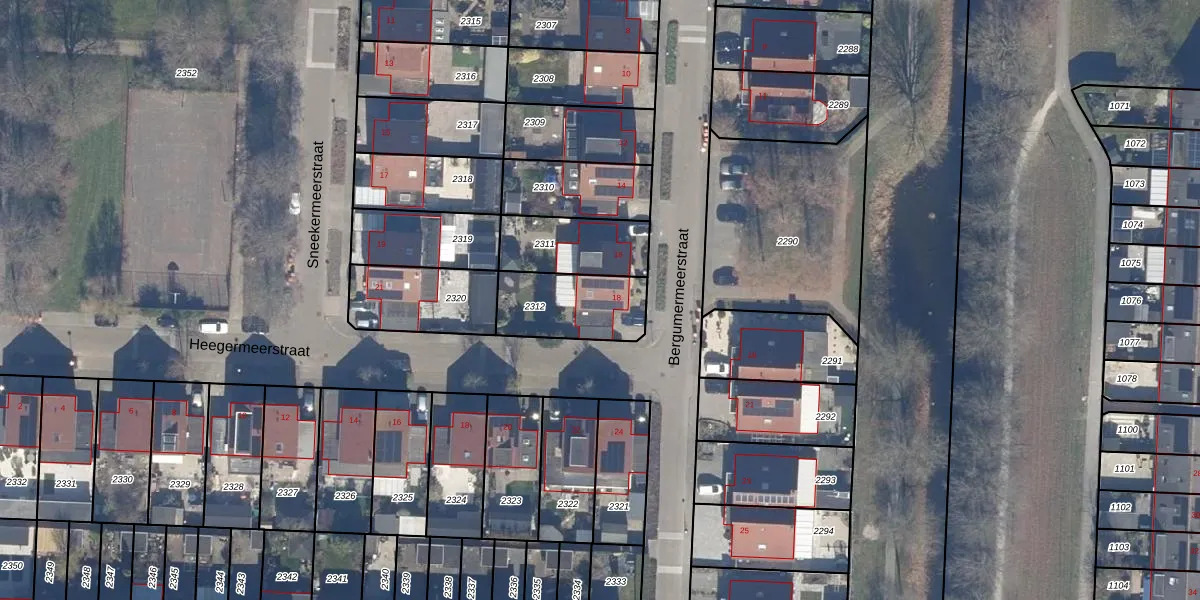 Gebruik de zoekbalk of klik op een perceel voor informatie over de adressen binnen dit perceel.