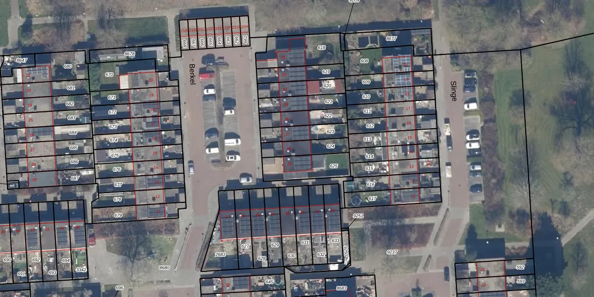 Gebruik de zoekbalk of klik op een perceel voor informatie over de adressen binnen dit perceel.