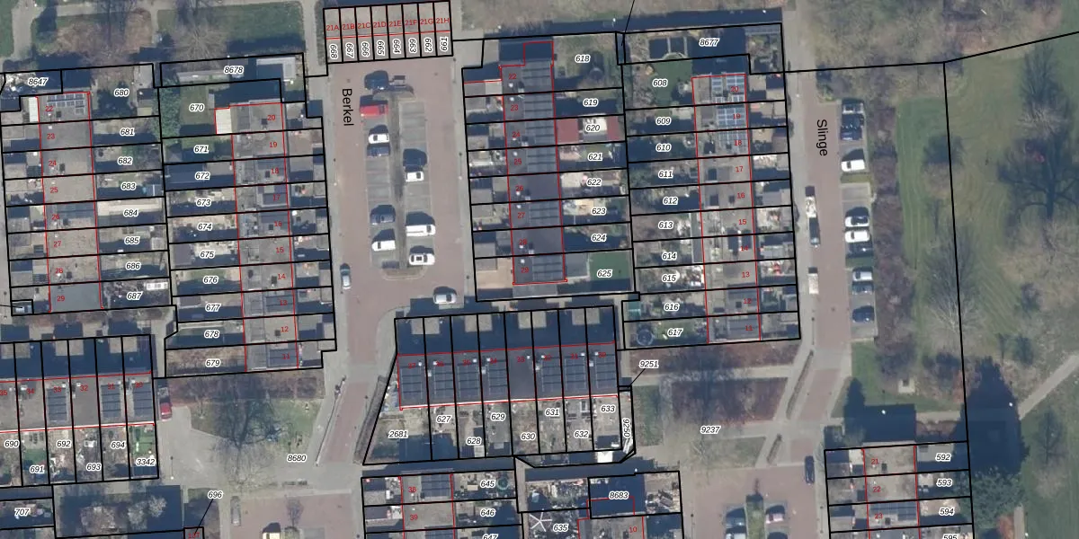 Gebruik de zoekbalk of klik op een perceel voor informatie over de adressen binnen dit perceel.