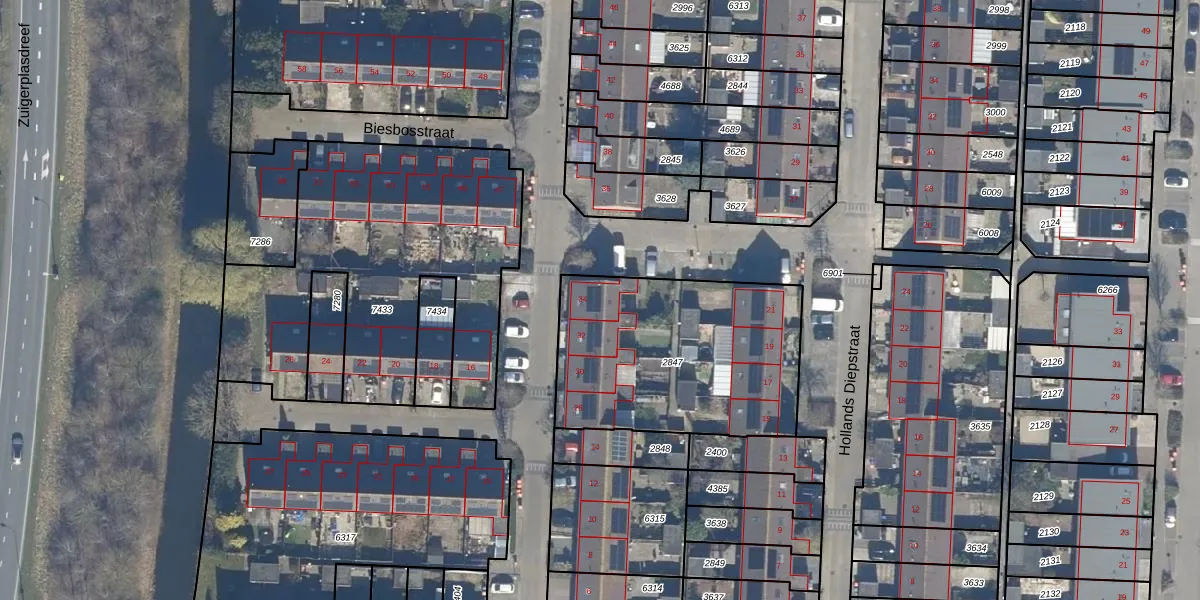 Het perceel waarop Biesbosstraat 34 staat heeft een oppervlakte van 1025 m². Dit is een zeer groot perceel. De perceeloppervlakte wordt geregistreerd door het Kadaster. Gedetailleerde informatie over de maten van dit perceel kunt u vinden in het rapport Kadastrale kaart met maatvoering van Biesbosstraat 34.