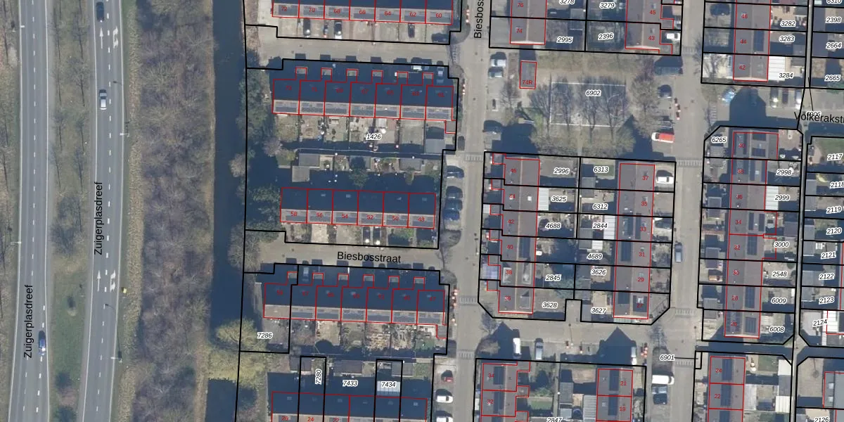 Het perceel waarop Biesbosstraat 48 staat heeft een oppervlakte van 2025 m². Dit is een zeer groot perceel. De perceeloppervlakte wordt geregistreerd door het Kadaster. Gedetailleerde informatie over de maten van dit perceel kunt u vinden in het rapport Kadastrale kaart met maatvoering van Biesbosstraat 48.