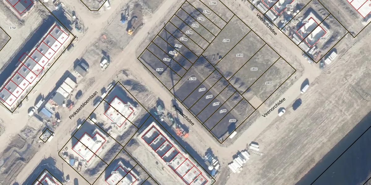 Het perceel waarop Bijenorchidee 1 staat heeft een oppervlakte van 260 m². Dit is een middelgroot perceel. De perceeloppervlakte wordt geregistreerd door het Kadaster. Gedetailleerde informatie over de maten van dit perceel kunt u vinden in het rapport Kadastrale kaart met maatvoering van Bijenorchidee 1.