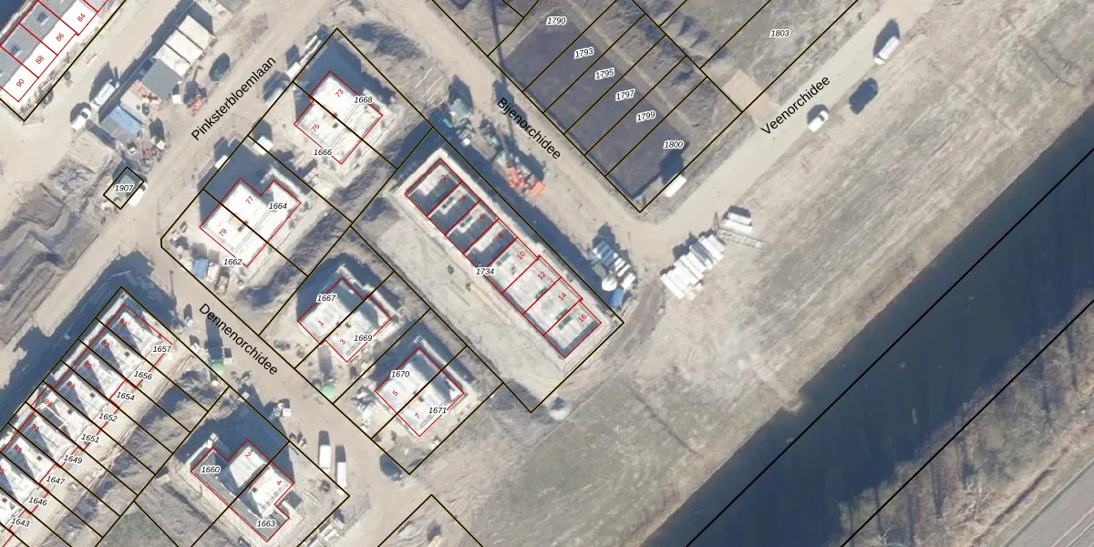 Het perceel waarop Bijenorchidee 12 staat heeft een oppervlakte van 1145 m². Dit is een zeer groot perceel. De perceeloppervlakte wordt geregistreerd door het Kadaster. Gedetailleerde informatie over de maten van dit perceel kunt u vinden in het rapport Kadastrale kaart met maatvoering van Bijenorchidee 12.