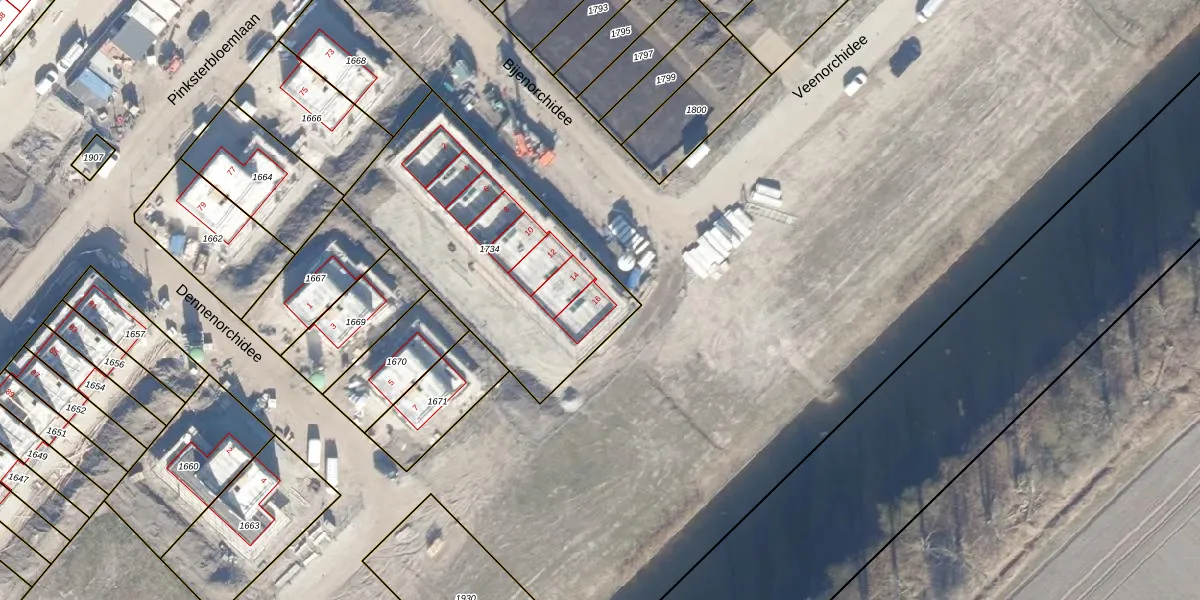 Het perceel waarop Bijenorchidee 16 staat heeft een oppervlakte van 1145 m². Dit is een zeer groot perceel. De perceeloppervlakte wordt geregistreerd door het Kadaster. Gedetailleerde informatie over de maten van dit perceel kunt u vinden in het rapport Kadastrale kaart met maatvoering van Bijenorchidee 16.