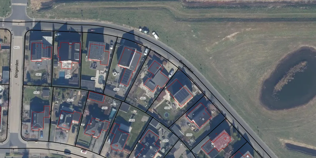 Bingerden 10 is gelegen op kadastraal perceel LLS00P5851. Deze kadastrale aanduiding is uniek en wordt gebruikt door het Kadaster om eigendomsrechten en andere zakelijke rechten vast te leggen. Het perceel maakt onderdeel uit van de kadastrale gemeente Lelystad.