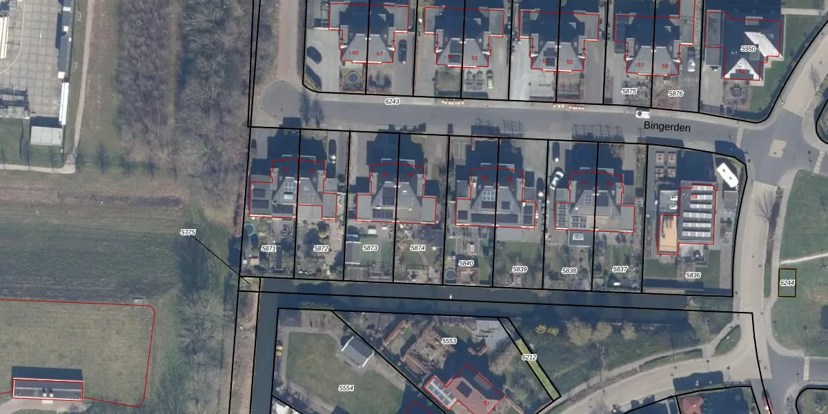Het perceel waarop Bingerden 48 staat heeft een oppervlakte van 434 m². Dit is een groot perceel. De perceeloppervlakte wordt geregistreerd door het Kadaster. Gedetailleerde informatie over de maten van dit perceel kunt u vinden in het rapport Kadastrale kaart met maatvoering van Bingerden 48.