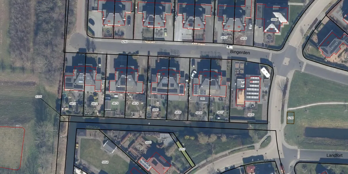 Het perceel waarop Bingerden 52 staat heeft een oppervlakte van 434 m². Dit is een groot perceel. De perceeloppervlakte wordt geregistreerd door het Kadaster. Gedetailleerde informatie over de maten van dit perceel kunt u vinden in het rapport Kadastrale kaart met maatvoering van Bingerden 52.