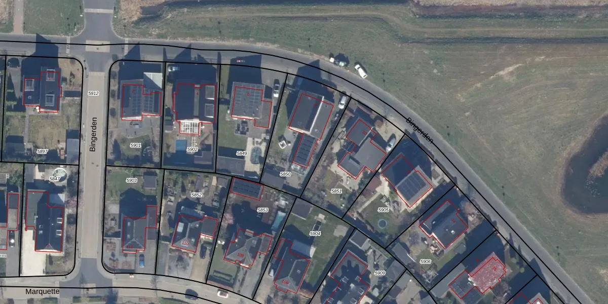 Het perceel waarop Bingerden 8-M staat heeft een oppervlakte van 688 m². Dit is een groot perceel. De perceeloppervlakte wordt geregistreerd door het Kadaster. Gedetailleerde informatie over de maten van dit perceel kunt u vinden in het rapport Kadastrale kaart met maatvoering van Bingerden 8-M.