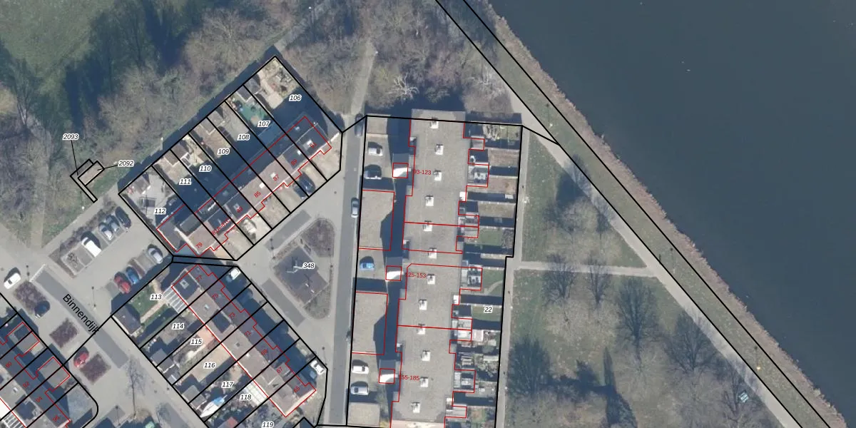 Het perceel waarop Binnendijk 119 staat heeft een oppervlakte van 2574 m². Dit is een zeer groot perceel. De perceeloppervlakte wordt geregistreerd door het Kadaster. Gedetailleerde informatie over de maten van dit perceel kunt u vinden in het rapport Kadastrale kaart met maatvoering van Binnendijk 119.