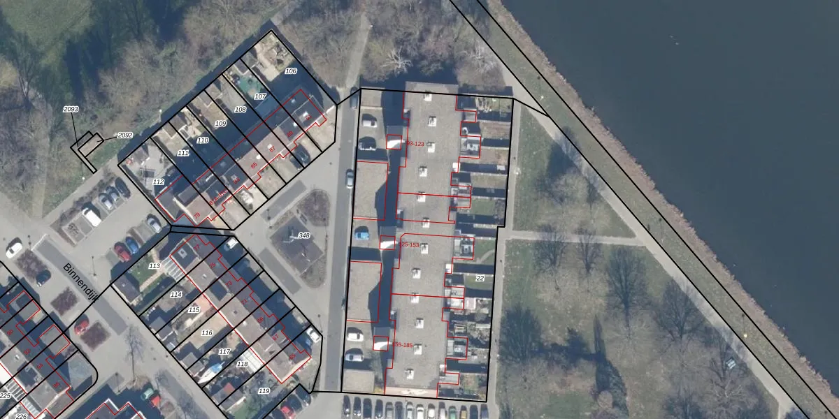 Het perceel waarop Binnendijk 143 staat heeft een oppervlakte van 2574 m². Dit is een zeer groot perceel. De perceeloppervlakte wordt geregistreerd door het Kadaster. Gedetailleerde informatie over de maten van dit perceel kunt u vinden in het rapport Kadastrale kaart met maatvoering van Binnendijk 143.