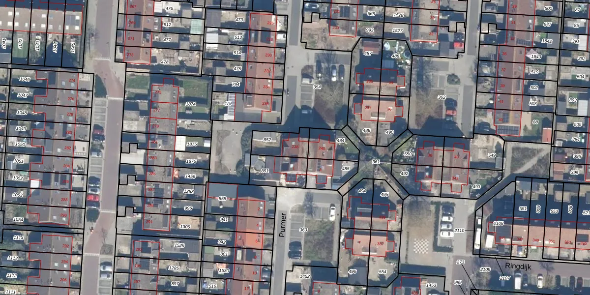 Gebruik de zoekbalk of klik op een perceel voor informatie over de adressen binnen dit perceel.