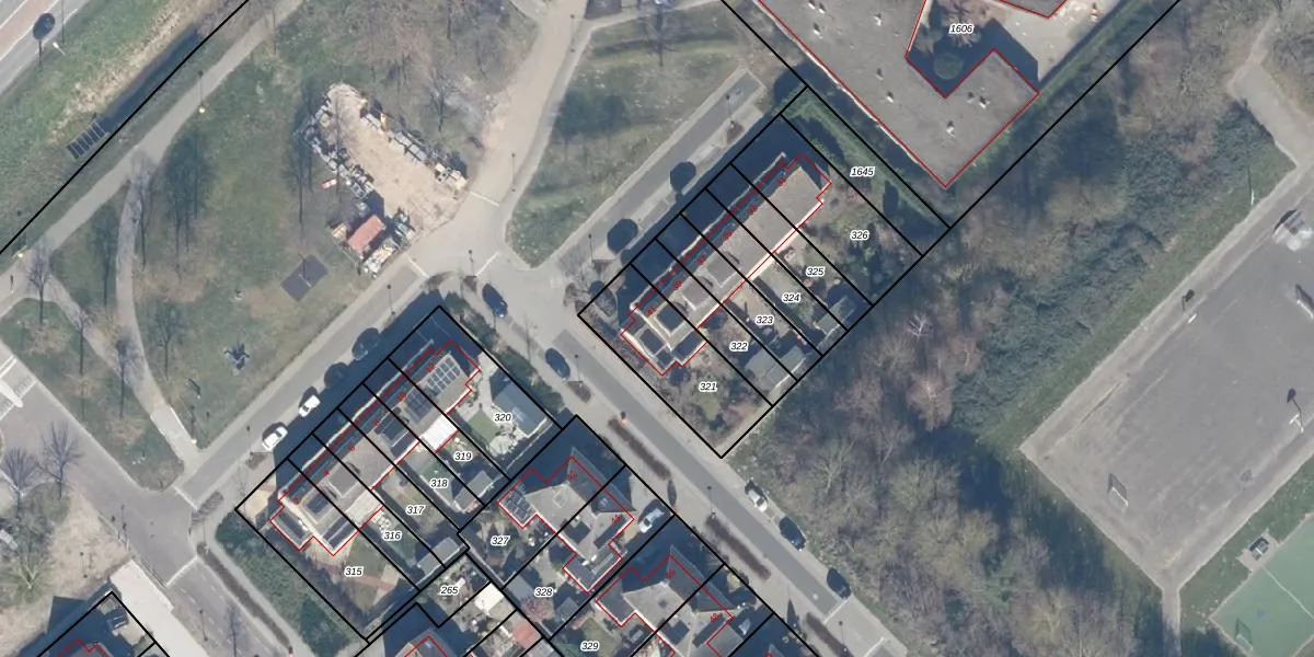 Gebruik de zoekbalk of klik op een perceel voor informatie over de adressen binnen dit perceel.