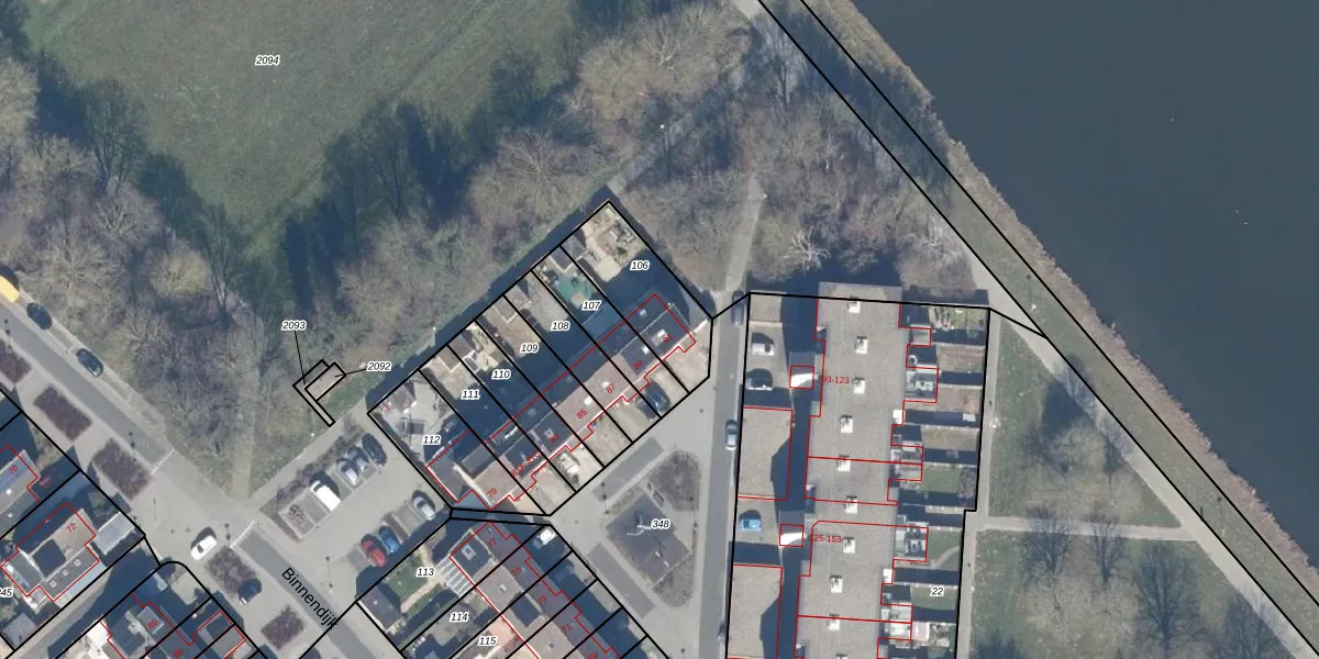 Het perceel waarop Binnendijk 91 staat heeft een oppervlakte van 282 m². Dit is een middelgroot perceel. De perceeloppervlakte wordt geregistreerd door het Kadaster. Gedetailleerde informatie over de maten van dit perceel kunt u vinden in het rapport Kadastrale kaart met maatvoering van Binnendijk 91.