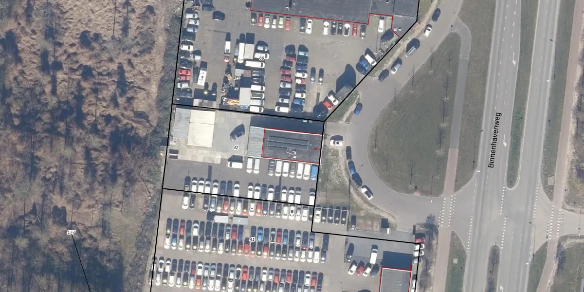 Het perceel waarop Binnenhavenweg 19 staat heeft een oppervlakte van 1523 m². Dit is een zeer groot perceel. De perceeloppervlakte wordt geregistreerd door het Kadaster. Gedetailleerde informatie over de maten van dit perceel kunt u vinden in het rapport Kadastrale kaart met maatvoering van Binnenhavenweg 19.