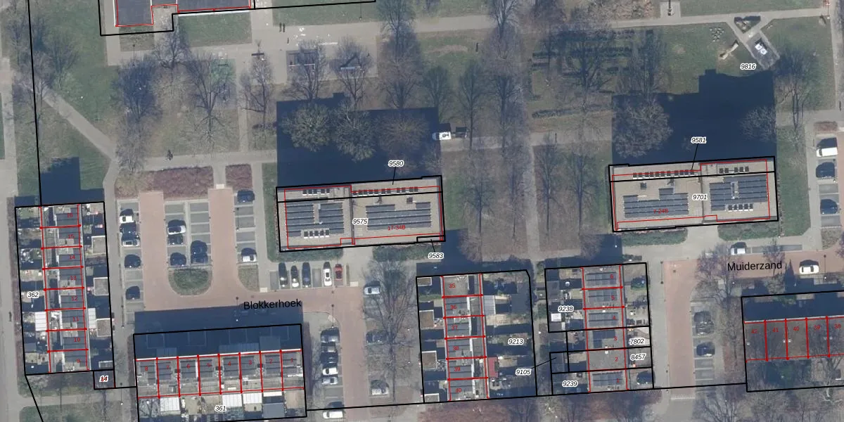 Het perceel waarop Blokkerhoek 25 staat heeft een oppervlakte van 449 m². Dit is een groot perceel. De perceeloppervlakte wordt geregistreerd door het Kadaster. Gedetailleerde informatie over de maten van dit perceel kunt u vinden in het rapport Kadastrale kaart met maatvoering van Blokkerhoek 25.