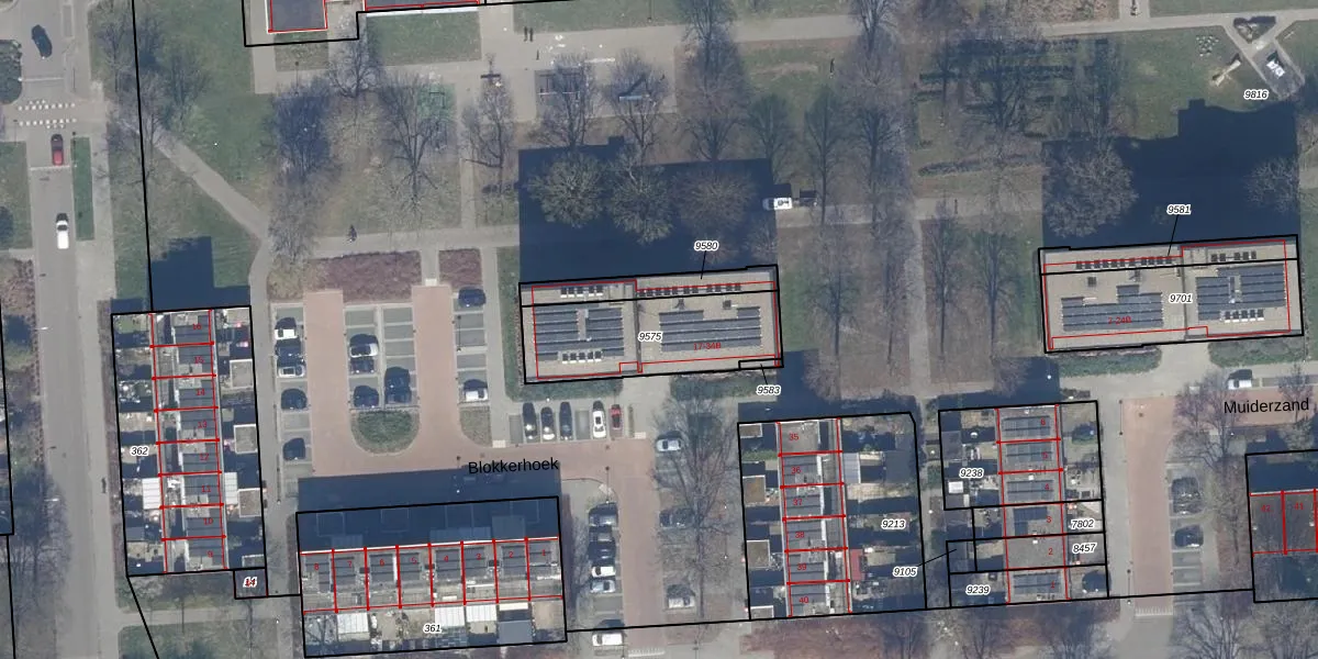 Het perceel waarop Blokkerhoek 33-A staat heeft een oppervlakte van 449 m². Dit is een groot perceel. De perceeloppervlakte wordt geregistreerd door het Kadaster. Gedetailleerde informatie over de maten van dit perceel kunt u vinden in het rapport Kadastrale kaart met maatvoering van Blokkerhoek 33-A.