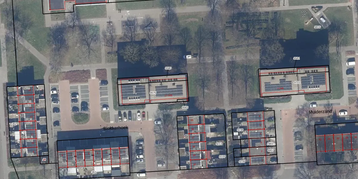 Het perceel waarop Blokkerhoek 33-C staat heeft een oppervlakte van 449 m². Dit is een groot perceel. De perceeloppervlakte wordt geregistreerd door het Kadaster. Gedetailleerde informatie over de maten van dit perceel kunt u vinden in het rapport Kadastrale kaart met maatvoering van Blokkerhoek 33-C.