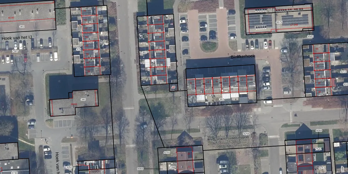 Gebruik de zoekbalk of klik op een perceel voor informatie over de adressen binnen dit perceel.
