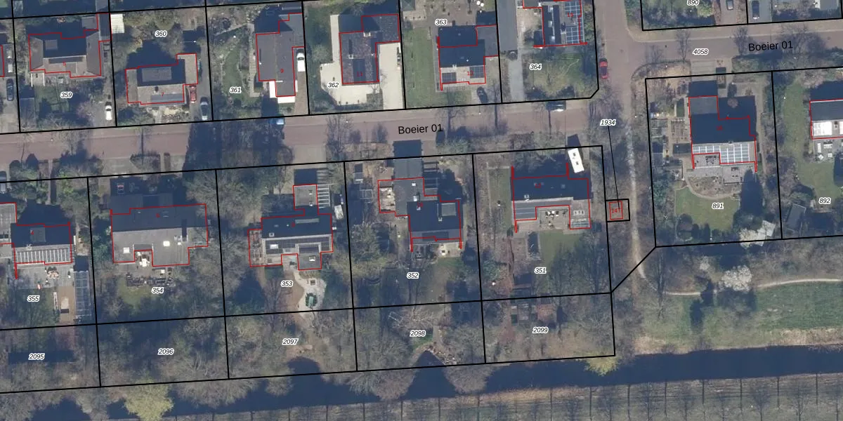 Gebruik de zoekbalk of klik op een perceel voor informatie over de adressen binnen dit perceel.