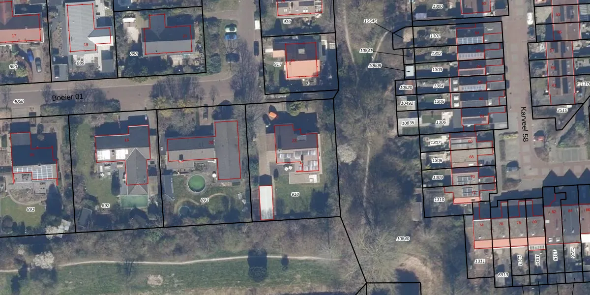 Het perceel waarop Boeier 01 22 staat heeft een oppervlakte van 1200 m². Dit is een zeer groot perceel. De perceeloppervlakte wordt geregistreerd door het Kadaster. Gedetailleerde informatie over de maten van dit perceel kunt u vinden in het rapport Kadastrale kaart met maatvoering van Boeier 01 22.