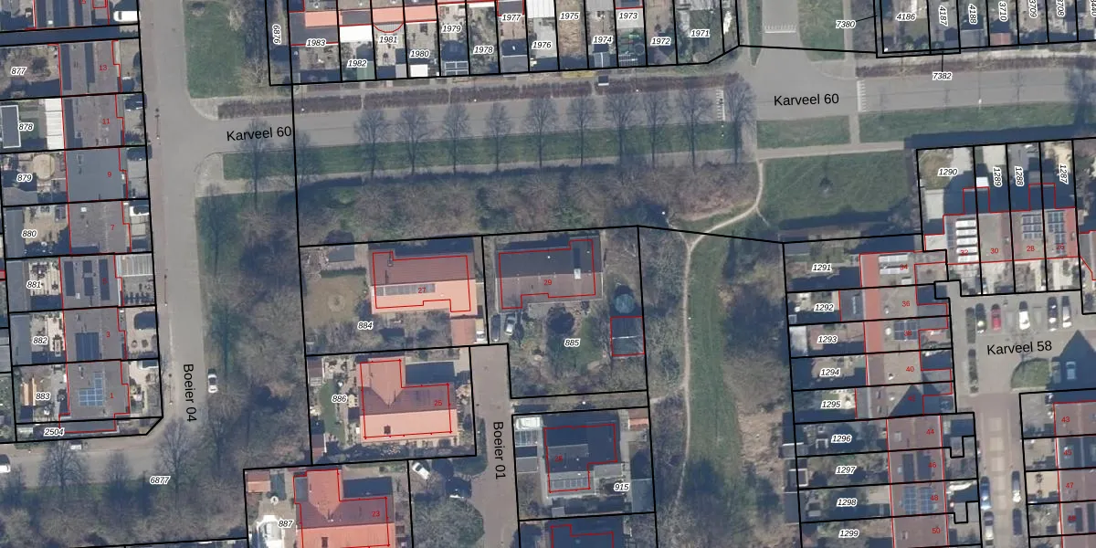 Het perceel waarop Boeier 01 29 staat heeft een oppervlakte van 821 m². Dit is een groot perceel. De perceeloppervlakte wordt geregistreerd door het Kadaster. Gedetailleerde informatie over de maten van dit perceel kunt u vinden in het rapport Kadastrale kaart met maatvoering van Boeier 01 29.