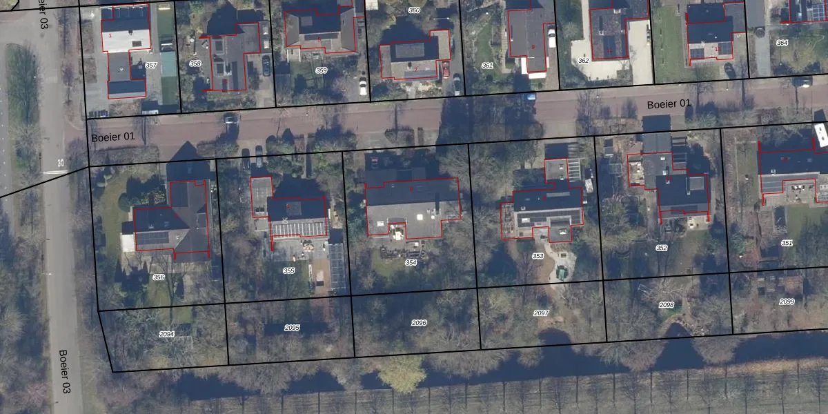 Het perceel waarop Boeier 01 6 staat heeft een oppervlakte van 1068 m². Dit is een zeer groot perceel. De perceeloppervlakte wordt geregistreerd door het Kadaster. Gedetailleerde informatie over de maten van dit perceel kunt u vinden in het rapport Kadastrale kaart met maatvoering van Boeier 01 6.