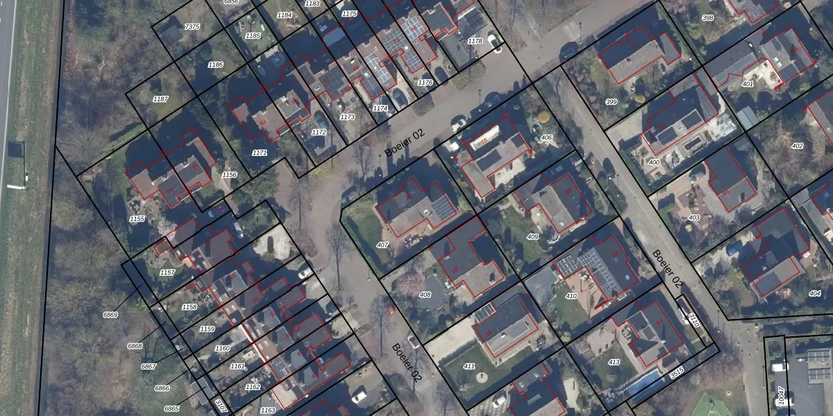 Het perceel waarop Boeier 02 20 staat heeft een oppervlakte van 537 m². Dit is een groot perceel. De perceeloppervlakte wordt geregistreerd door het Kadaster. Gedetailleerde informatie over de maten van dit perceel kunt u vinden in het rapport Kadastrale kaart met maatvoering van Boeier 02 20.