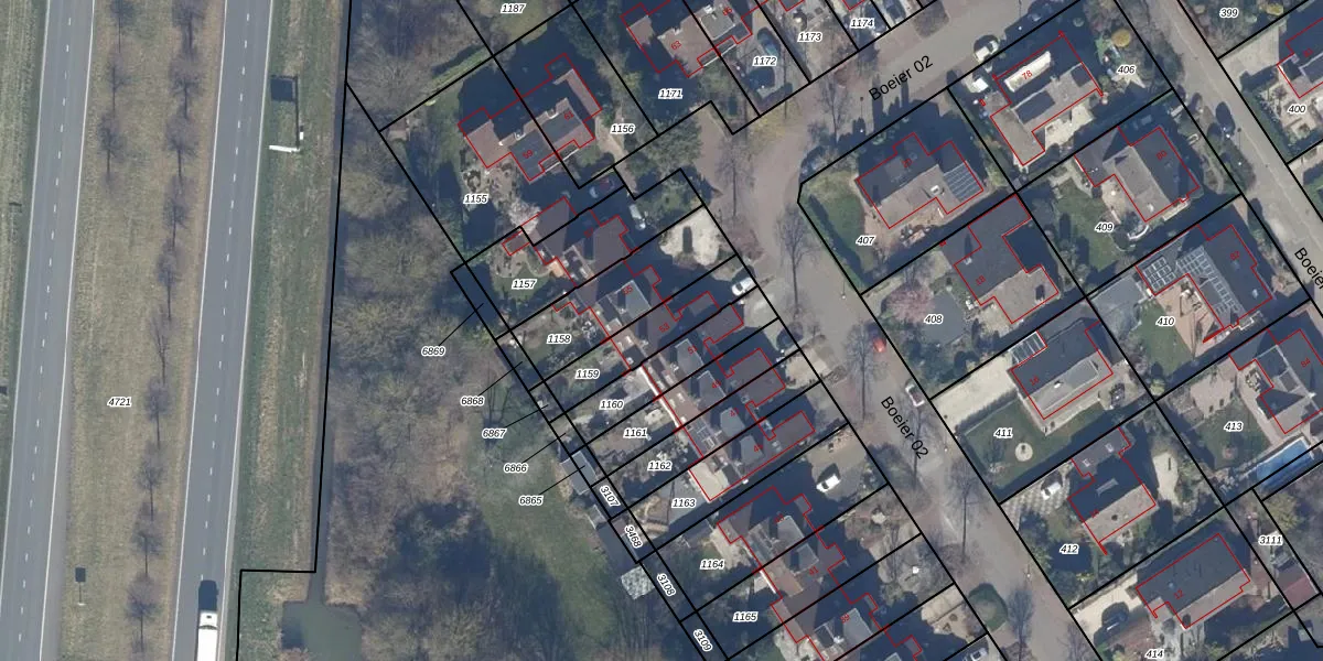 Het perceel waarop Boeier 02 53 staat heeft een oppervlakte van 201 m². Dit is een middelgroot perceel. De perceeloppervlakte wordt geregistreerd door het Kadaster. Gedetailleerde informatie over de maten van dit perceel kunt u vinden in het rapport Kadastrale kaart met maatvoering van Boeier 02 53.