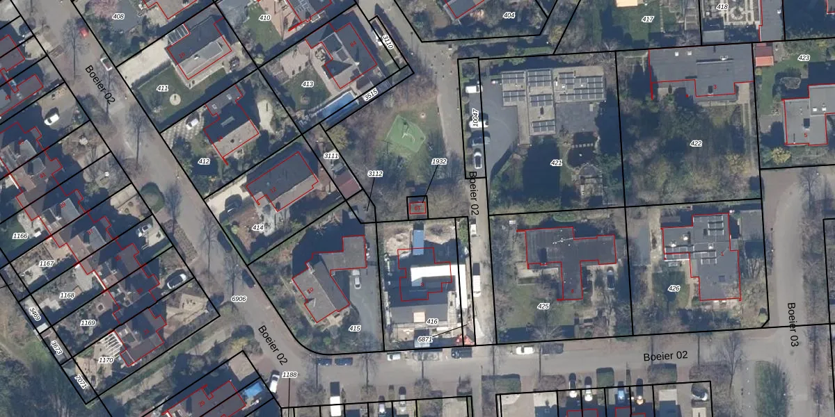 Het perceel waarop Boeier 02 6-T staat heeft een oppervlakte van 27 m². Dit is een klein perceel. De perceeloppervlakte wordt geregistreerd door het Kadaster. Gedetailleerde informatie over de maten van dit perceel kunt u vinden in het rapport Kadastrale kaart met maatvoering van Boeier 02 6-T.