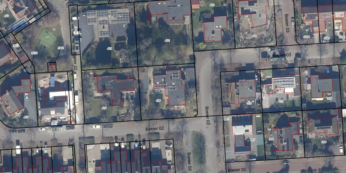 Boeier 03 1 is gelegen op kadastraal perceel LLS00M426. Deze kadastrale aanduiding is uniek en wordt gebruikt door het Kadaster om eigendomsrechten en andere zakelijke rechten vast te leggen. Het perceel maakt onderdeel uit van de kadastrale gemeente Lelystad.