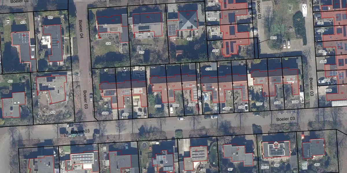 Gebruik de zoekbalk of klik op een perceel voor informatie over de adressen binnen dit perceel.