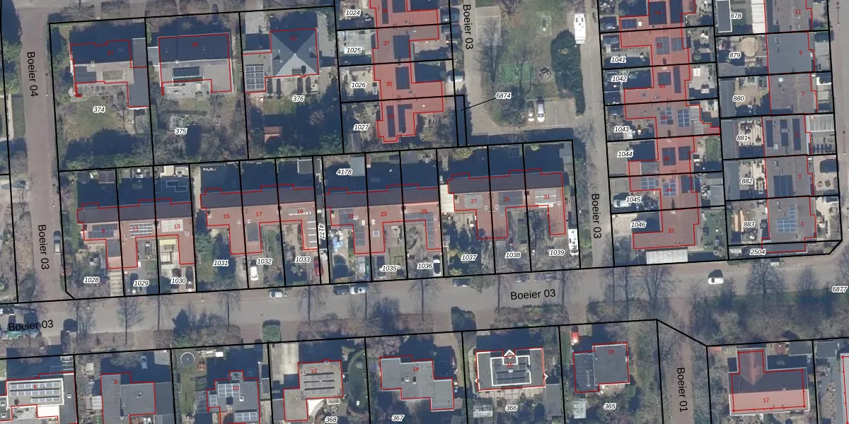 Gebruik de zoekbalk of klik op een perceel voor informatie over de adressen binnen dit perceel.