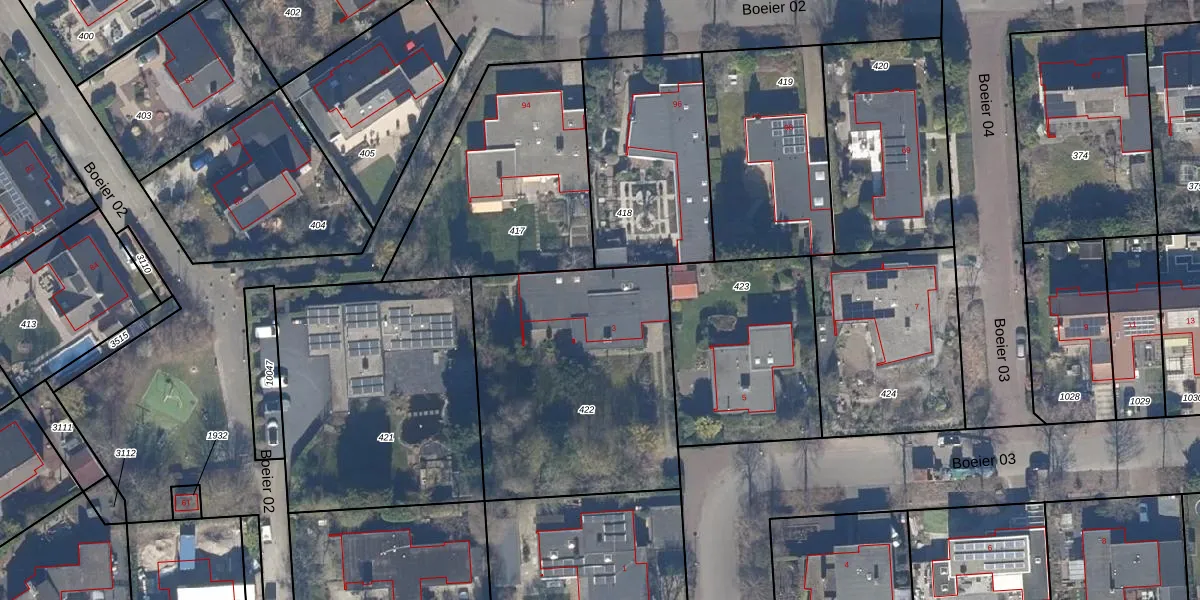 Het perceel waarop Boeier 03 3 staat heeft een oppervlakte van 1228 m². Dit is een zeer groot perceel. De perceeloppervlakte wordt geregistreerd door het Kadaster. Gedetailleerde informatie over de maten van dit perceel kunt u vinden in het rapport Kadastrale kaart met maatvoering van Boeier 03 3.