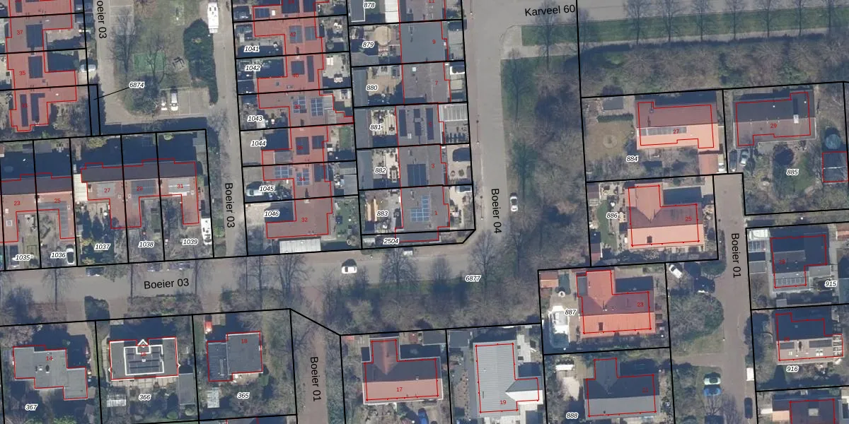Gebruik de zoekbalk of klik op een perceel voor informatie over de adressen binnen dit perceel.