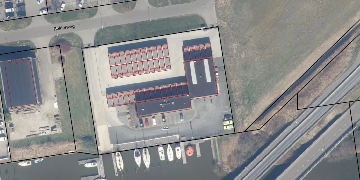 Bolderweg 43-G is gelegen op kadastraal perceel LLS00N2840. Deze kadastrale aanduiding is uniek en wordt gebruikt door het Kadaster om eigendomsrechten en andere zakelijke rechten vast te leggen. Het perceel maakt onderdeel uit van de kadastrale gemeente Lelystad.