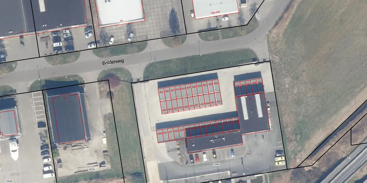 Bolderweg 45-G is gelegen op kadastraal perceel LLS00N2840. Deze kadastrale aanduiding is uniek en wordt gebruikt door het Kadaster om eigendomsrechten en andere zakelijke rechten vast te leggen. Het perceel maakt onderdeel uit van de kadastrale gemeente Lelystad.