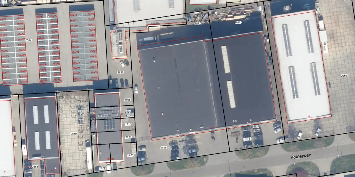 Het perceel waarop Bolderweg 50 staat heeft een oppervlakte van 3766 m². Dit is een zeer groot perceel. De perceeloppervlakte wordt geregistreerd door het Kadaster. Gedetailleerde informatie over de maten van dit perceel kunt u vinden in het rapport Kadastrale kaart met maatvoering van Bolderweg 50.