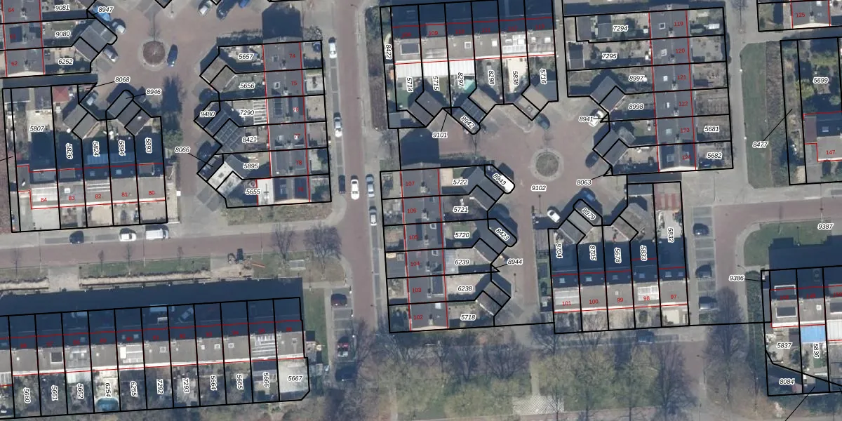 Gebruik de zoekbalk of klik op een perceel voor informatie over de adressen binnen dit perceel.