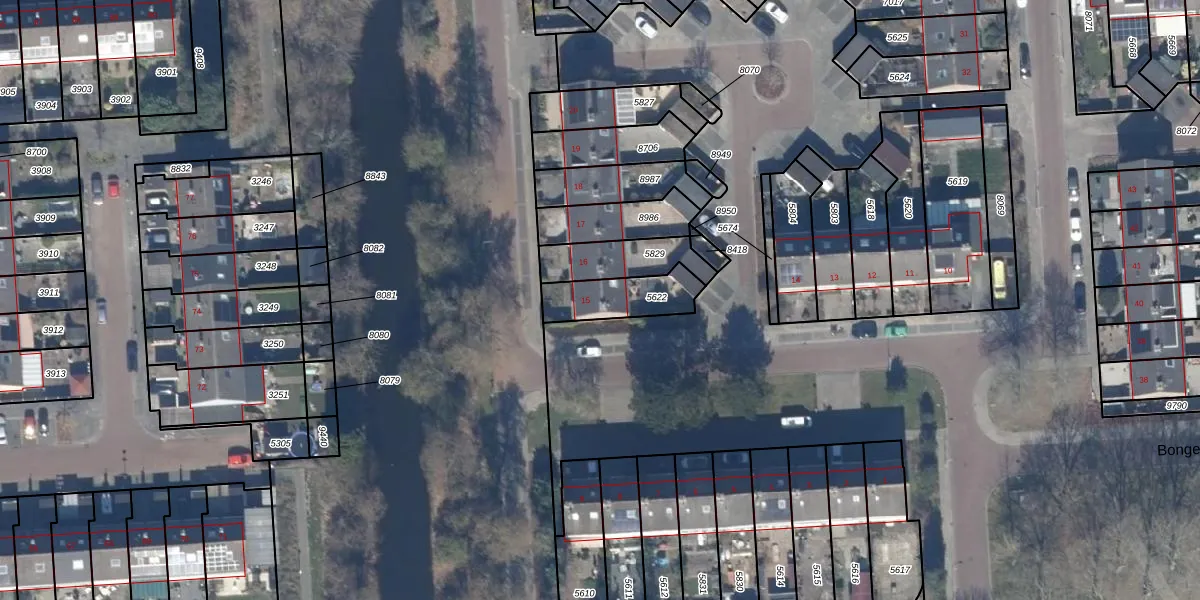 Het perceel waarop Bongerd 15 staat heeft een oppervlakte van 175 m². Dit is een middelgroot perceel. De perceeloppervlakte wordt geregistreerd door het Kadaster. Gedetailleerde informatie over de maten van dit perceel kunt u vinden in het rapport Kadastrale kaart met maatvoering van Bongerd 15.