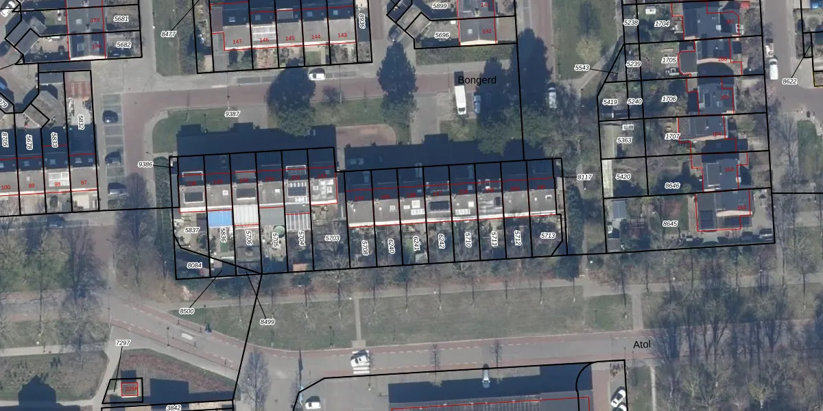 Het perceel waarop Bongerd 156 staat heeft een oppervlakte van 149 m². Dit is een middelgroot perceel. De perceeloppervlakte wordt geregistreerd door het Kadaster. Gedetailleerde informatie over de maten van dit perceel kunt u vinden in het rapport Kadastrale kaart met maatvoering van Bongerd 156.