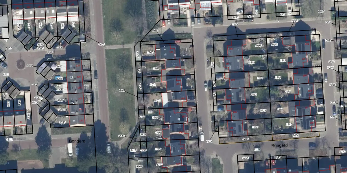 Het perceel waarop Bongerd 169 staat heeft een oppervlakte van 281 m². Dit is een middelgroot perceel. De perceeloppervlakte wordt geregistreerd door het Kadaster. Gedetailleerde informatie over de maten van dit perceel kunt u vinden in het rapport Kadastrale kaart met maatvoering van Bongerd 169.