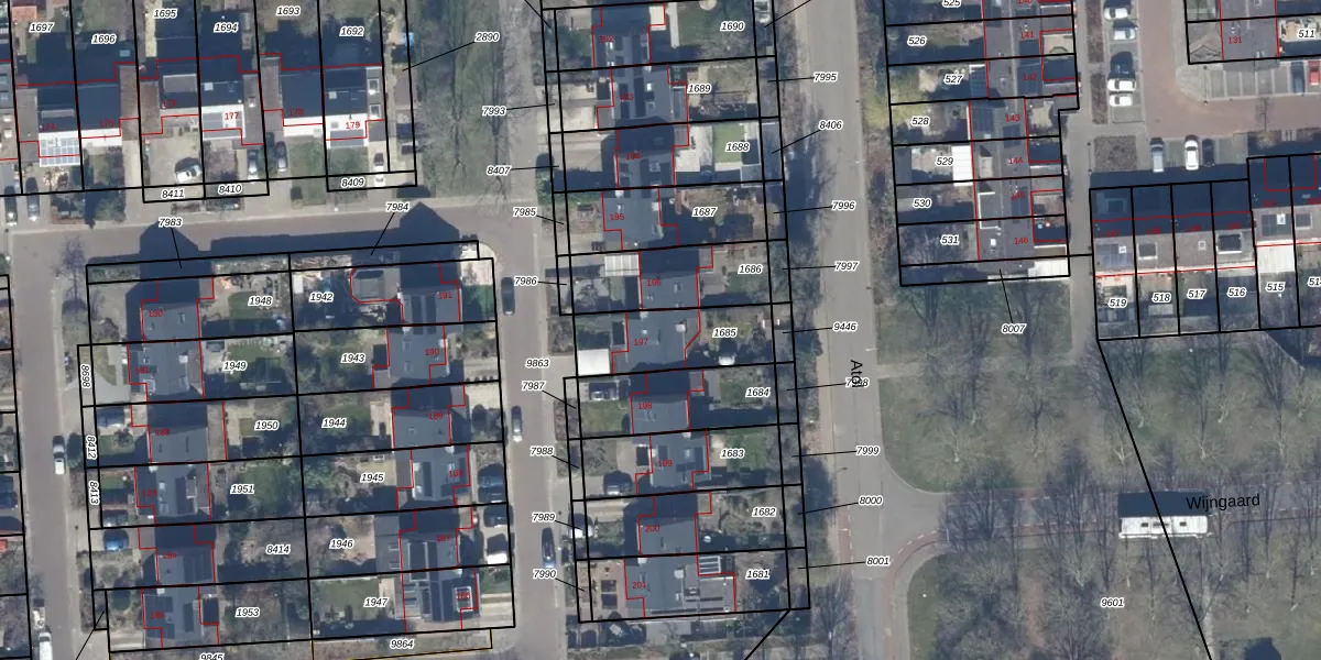 Gebruik de zoekbalk of klik op een perceel voor informatie over de adressen binnen dit perceel.