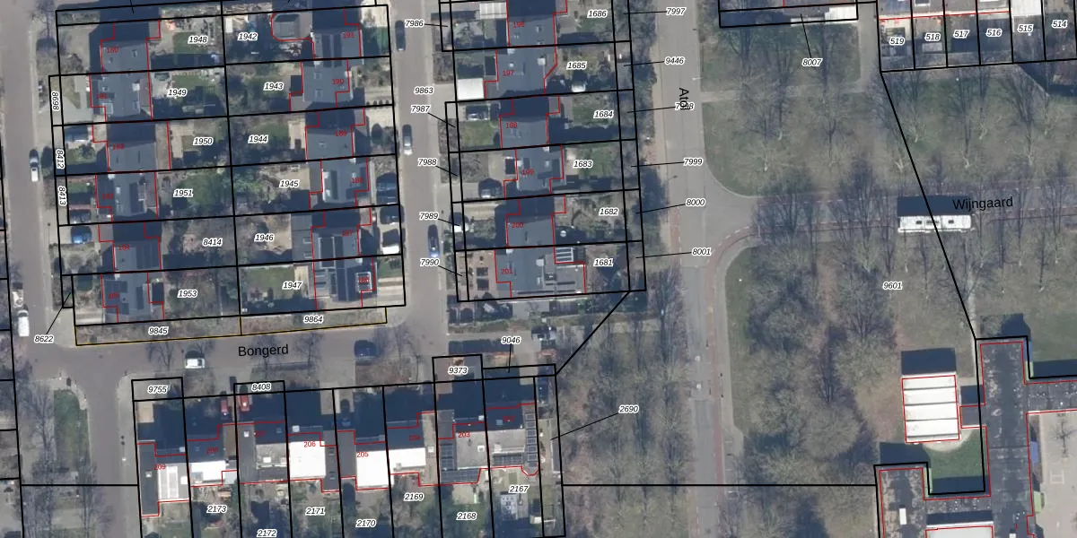 Het perceel waarop Bongerd 201 staat heeft een oppervlakte van 280 m². Dit is een middelgroot perceel. De perceeloppervlakte wordt geregistreerd door het Kadaster. Gedetailleerde informatie over de maten van dit perceel kunt u vinden in het rapport Kadastrale kaart met maatvoering van Bongerd 201.