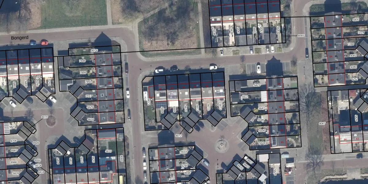Het perceel waarop Bongerd 46 staat heeft een oppervlakte van 167 m². Dit is een middelgroot perceel. De perceeloppervlakte wordt geregistreerd door het Kadaster. Gedetailleerde informatie over de maten van dit perceel kunt u vinden in het rapport Kadastrale kaart met maatvoering van Bongerd 46.